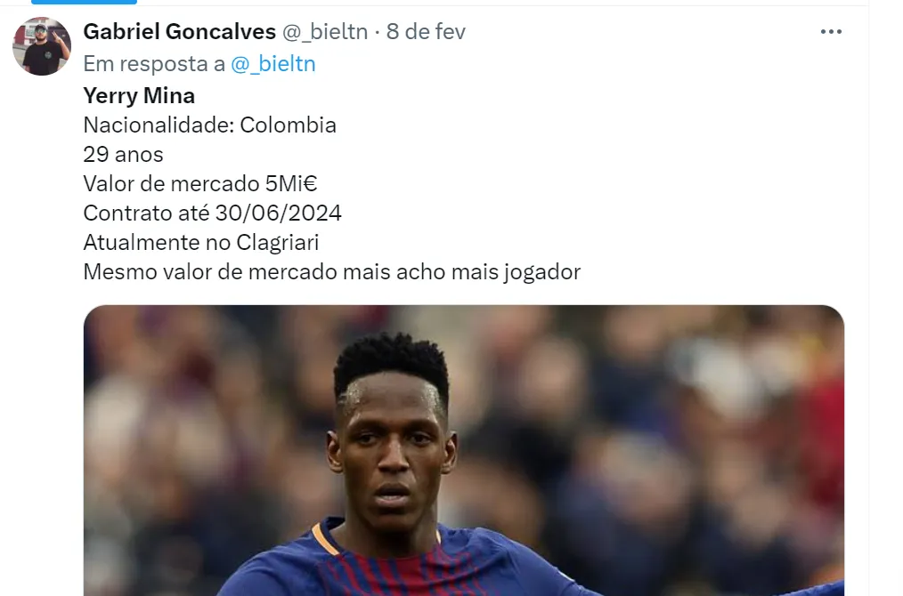 “Uma informação exclusiva que me confidenciada por um dirigente importante do Timão: Yerry Mina quase virou jogador do Corinthians”, completou Nicola na principal informação de seu vídeo.