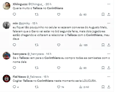 Augusto deu uma declaração em que ele afirma que o Corinthians estaria negociando para fechar com um meia badalado, de alto nível, com um 1,90m de altura. Essa peculiaridade sobre a medida do atleta fez com a Fiel especulasse Talisca, que tem exatamente essa altura.