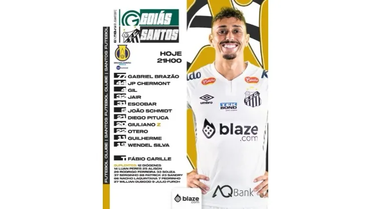 O Peixe entra em campo com Gabriel Brazão, JP Chermont, Gil, Jair, Escobar, João Schmidt, Diego Pituca, Giuliano, Otero, Guilherme e Wendel Silva, sob comando do técnico Fábio Carille.