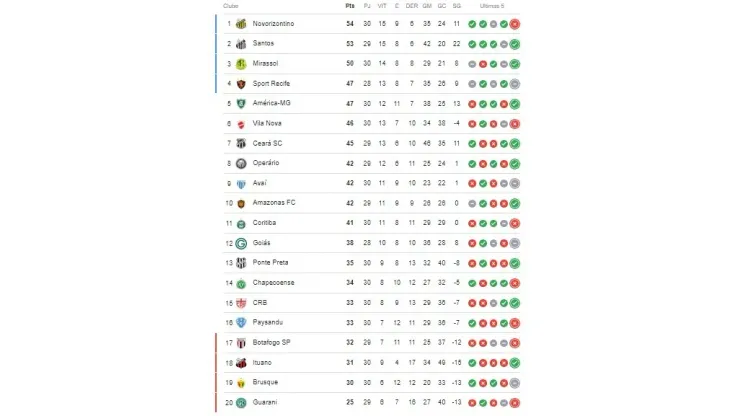 No momento, o Alvinegro está em segundo lugar, com 53 pontos, somente atrás do Novorizontino, com 54.