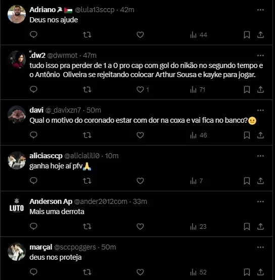 Já o Corinthians, luta para sair da zona de rebaixamento. Hoje o clube ocupa o décimo oitavo lugar, com apenas 7 pontos.