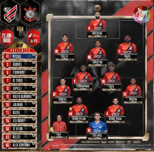 Autoriza o árbitro, vamos para a etapa inicial de Athletico-PR x Corinthians. Vamos juntos, torcedor!