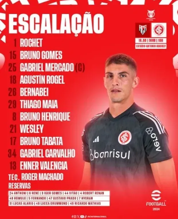 O Colorado vem a campo com Rochet, Bruno Gomes, Gabriel Mercado, Agustín Rogel, Bernabei, Thiago Maia, Bruno Henrique, Wesley, Bruno Tabata, Gabriel Carvalho e Enner Valencia, sob comando do técnico Roger Machado.