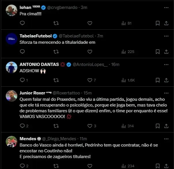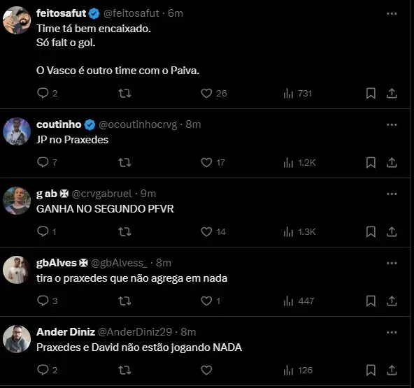 TORCIDA VASCAÍNA COMENTA O PRIMEIRO TEMPO NA WEB