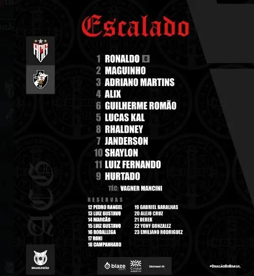 O Dragão vem a campo com Ronaldo, Maguinho, Adriano Martins, Alix, Guilherme Romão, Lucas Kal, Rhaldney, Janderson, Shaylon, Luiz Fernando e Hurtado, sob comando do Técnico Wagner Mancini.