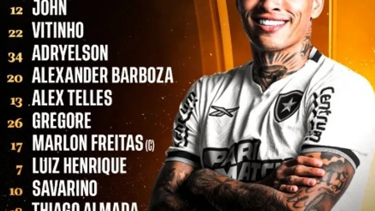 O Glorioso começa a sua primeira final da Libertadores com John, Vitinho, Adryelson, Alexander Barboza, Alex Telles, Gregore, Marlon Freitas, Luiz Henrique, Savarino, Thiago Almada e Igor Jesus, com o técnico Artur Jorge no comando.