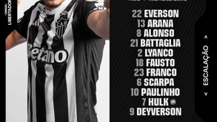 O Galo vem a campo com Everson, Guilherme Arana, Alonso, Battaglia, Lyanco, Fausto Vera, Alan Franco, Gustavo Scarpa, Paulinho, Hulk e Deyverson, sob comando do técnico Gabriel Milito.