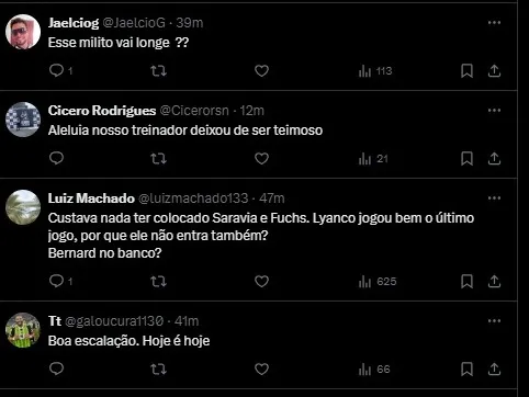 Pelo Atlético-MG: Sai: Fuchs Entra: Saravia