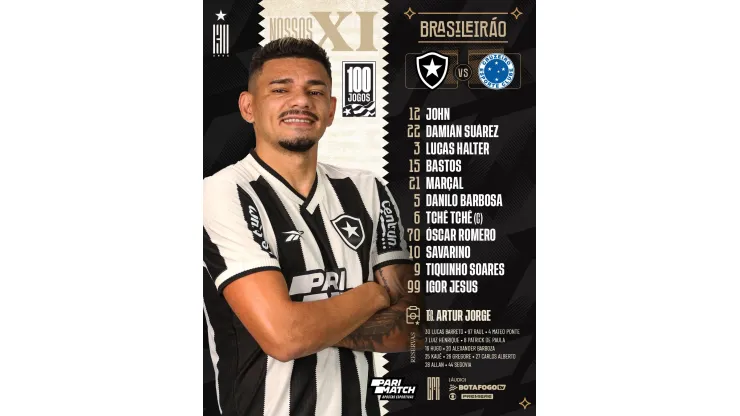 O Alvinegro vem a campo com: John, Damián Suárez, Lucas Halter, Bastos e Marçal; Danilo Barbosa, Tchê Tchê (C), Óscar Romero e Savarino; Tiquinho Soares e Igor Jesus
