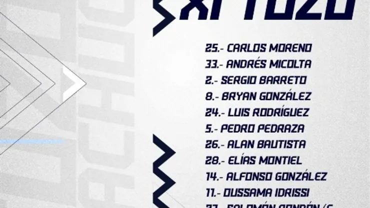 Os Tuzos começam a decisão com Carlos Moreno, Andrés Micolta, Sergio Barreto, Bryan González, Luis Rodríguez, Pedro Pedraza, Alan Bautista, Elías Montiel, Alfonso González, Oussama Idrissi e Salomón Rondón, com o técnico Guillermo Almada no comando.