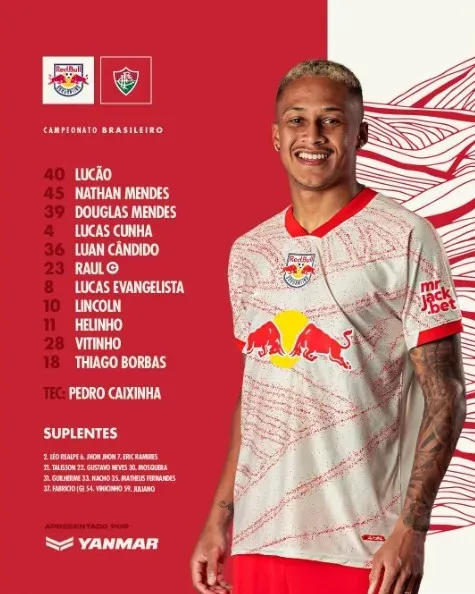 O Bragantino vem a campo com Lucão, Nathan Mendes, Douglas Mendes, Lucas Cunha, Luan Cândido, Raul, Lucas Evangelista, Lincoln, Helinho, Vitinho e Thiago Borbas, sob comando do técnico Pedro Caixinha.