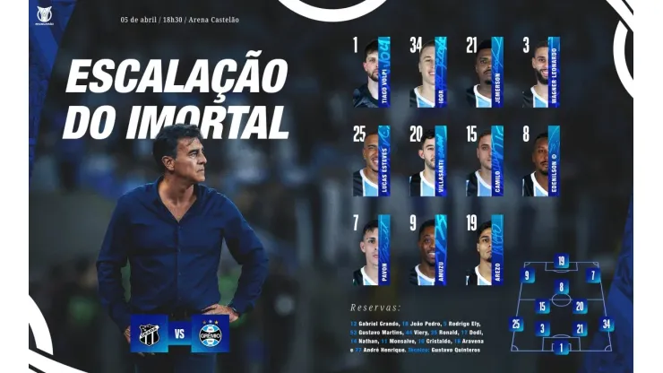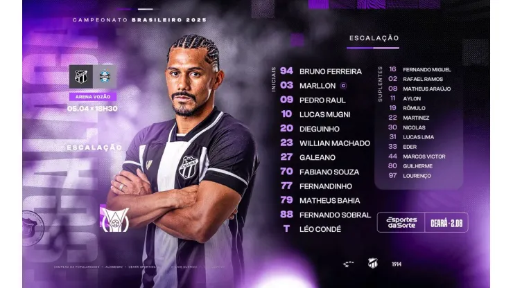 Ceará X Grêmio jogam pela segunda rodada do Brasileirão 2025. O confronto deste sábado (5) terá início às 18h30 (de Brasília), na Arena Castelão, em Fortaleza.