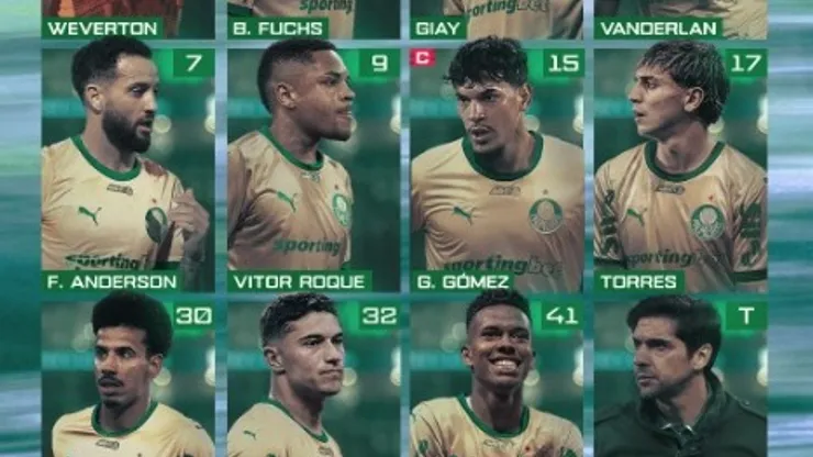 O Verdão vem a campo com Weverton, Bruno Fuchs, Gustavo Gómez, Vanderlan, Giay, Emiliano Martínez, Lucas Evangelista, Felipe Anderson, Facundo Torres, Estevâo e Vitor Roque, sob comando do técnico Abel Ferreira.