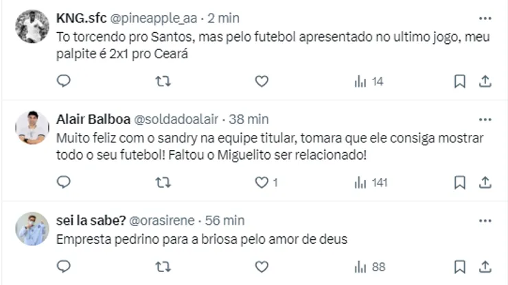 O Peixe é o primeiro colocado, com 25 pontos. São quatro partidas de invencibilidade. Já o Vozão tem 19 e vem no nono lugar, mas ainda pode perder posições no decorrer da rodada.