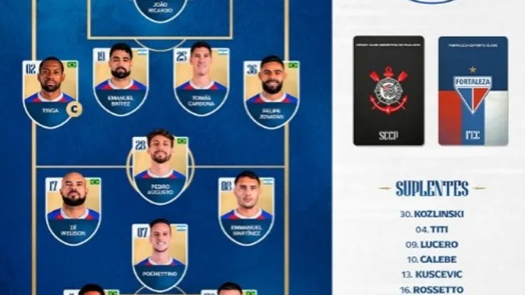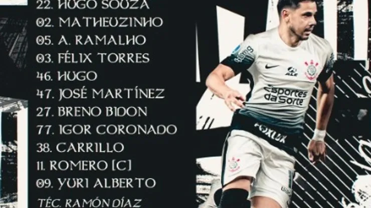 O Timão vem a campo com Hugo Souza, Matheuzinho, André Ramalho, Felix Torres, Hugo, José Martínez, Breno Bidon, Igor Coronado, Carrillo, Romero e Yuri Alberto, sob comando do técnico Ramón Díaz.