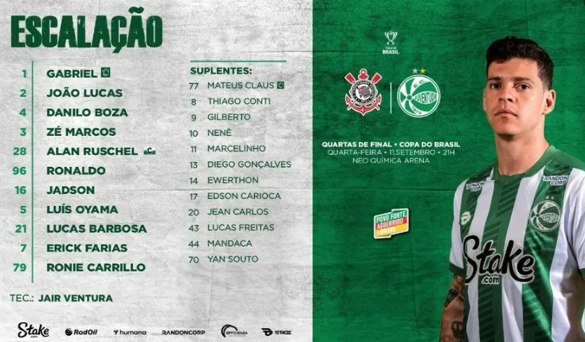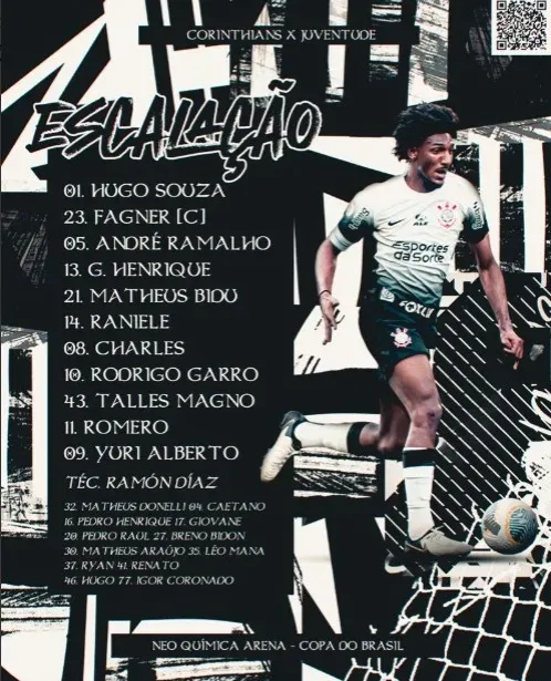 Nesta quarta-feira (11), o Corinthians recebeu o Juventude em jogo decisivo pelas quartas de finais da Copa do Brasil. A partida começou às 21h (horário de Brasília), e foi realizada na Neo Química Arena, em São Paulo.