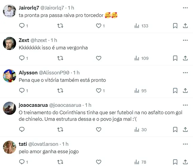 Com o resultado, o Corinthians assume a 17ª posição do Brasileirão, com 12 pontos. Já o Vitória, é o 16º colocado também com 12 pontos.