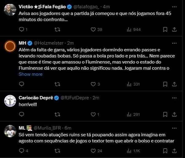 TORCIDA DO FOGÃO INSATISFEITA NA WEB