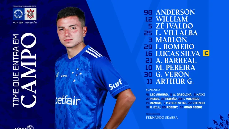A Raposa vem a campo com: Anderson, William, Zé Ivaldo, Villalba e Marlon; L. Romero, Lucas Silva (C), A. Barreal e Matheus Pereira; Gabriel Veron e Arthur G.