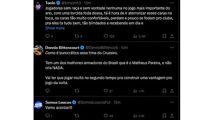 Torcida mineira reagindo a escalação do time para o jogo de daqui a pouco.