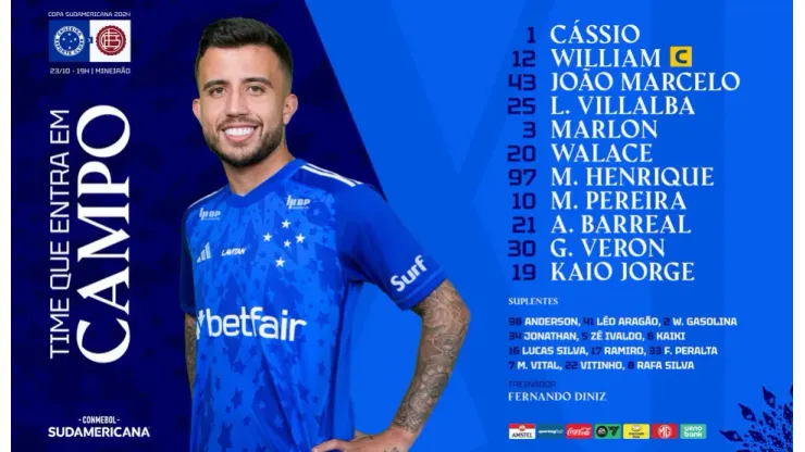 A Raposa vem a campo com Cássio, William, João Marcelo, Villalba, Marlon, Walace, Matheus Henrique, Matheus Pereira, Barreal, Gabriel Veron e Kaio Jorge, sob comando do técnico Fernando Diniz.