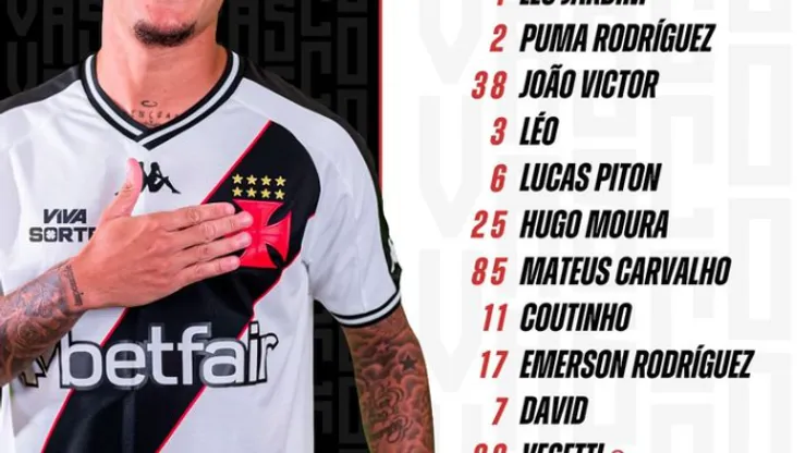 Escalação do Vasco: Léo Jardim; Puma, João Victor, Léo, Lucas Piton; Mateus Carvalho, Hugo Moura, Coutinho; Emerson Rodríguez, David e Vegetti. Técnico: Rafael Paiva (Acessibilidade)