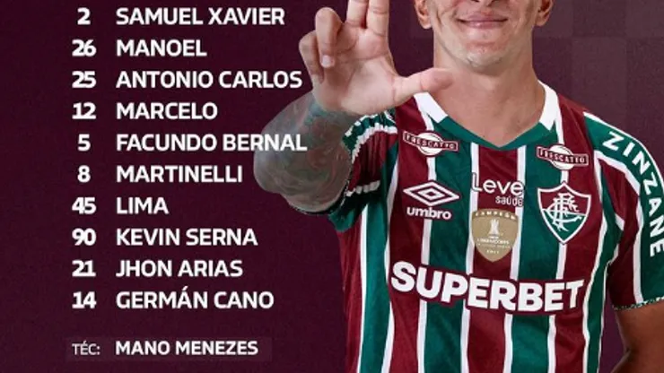 Fábio; Samuel Xavier, Felipe Melo, Antônio Carlos, Diogo Barbosa; Bernal, Martinelli, Ganso; Arias, Serna, Kauã Elias.