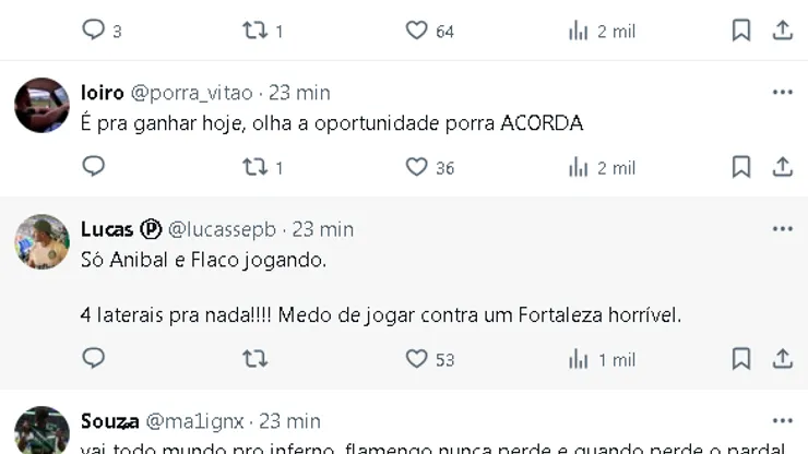 Mandante do duelo, o Fortaleza tem 14 pontos somados e figura na 11ª colocação. O Palmeiras, por sua vez, é o vice-líder com 23 pontos, um a menos que o Flamengo.