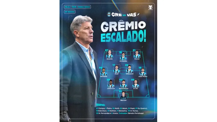 "Jogo difícil, como todos os jogos. O Vasco não jogou durante a semana. Hoje estou mudando algumas peças devido ao desgaste dos jogadores. Viajamos à noite, o desgaste é muito grande. Quarto estádio que jogamos com o mando do Grêmio. Mas vamos deixar isso de lado e procurar fazer um bom jogo pra superar a equipe do Vasco"