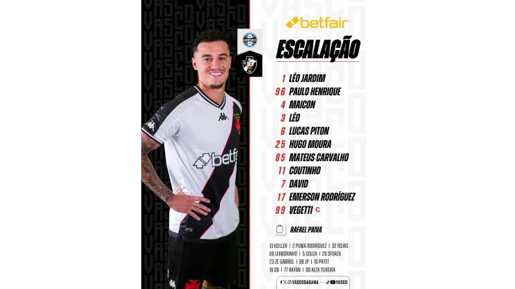 O destaque das formações, vai para a presença de Philippe Coutinho entre os titulares, será a sua segunda partida na volta ao Vasco. O colombiano Emerson Rivaldo também é uma novidade, ele substitui Adson, que está sendo poupado.