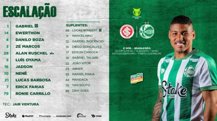 A partida entre Internacional x Juventude teve transmissão ao vivo pelo site do Bolavip Brasil a partir das 18h, com atualizações desde o pré-jogo e últimas notícias do evento.
