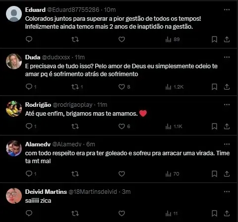 TORCIDA COLORADA INSATISFEITA COM O TIME ATÉ AQUI