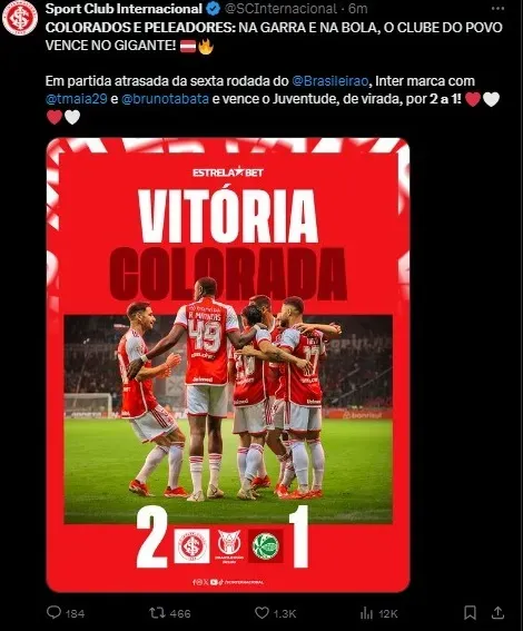 Nesta quarta-feira (14), às 19h30 (horário de Brasília),Internacional e Juventude se enfrentaram no Estádio Beira-Rio em Porto Alegre em jogo válido pela sexta rodada que estava atrasada no Campeonato Brasileiro.