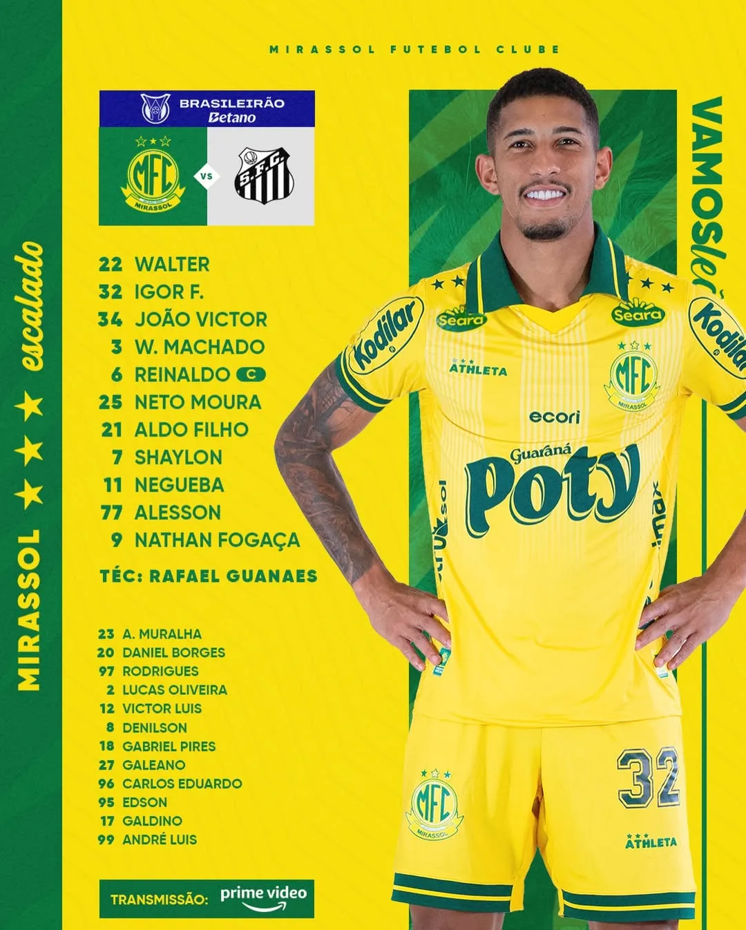 Acompanhe nesta terça-feira (10), um grande jogo entre Mirassol x Santos, com início às 21h30 (horário de Brasília), no Estádio Campos Maia, em confronto válido pela 5ª rodada do Campeonato Brasileiro.