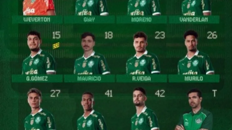 O Verdão vem a campo com Weverton, Giay, Aníbal Moreno, Vanderlan, Gustavo Gómez, Mauricio, Raphael Veiga, Murilo, Richard Ríos, Estêvão e Flaco López, sob comando do técnico Abel Ferreira.