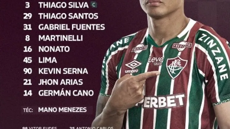 O Flu começa a decisão com Fábio, Samuel Xavier, Thiago Silva, Thiago Santos, Gabriel Fuentes, Martinelli, Nonato, Lima, Kevin Serna, Jhon Arias e German Cano, com o treinador Mano Menezes no comando.