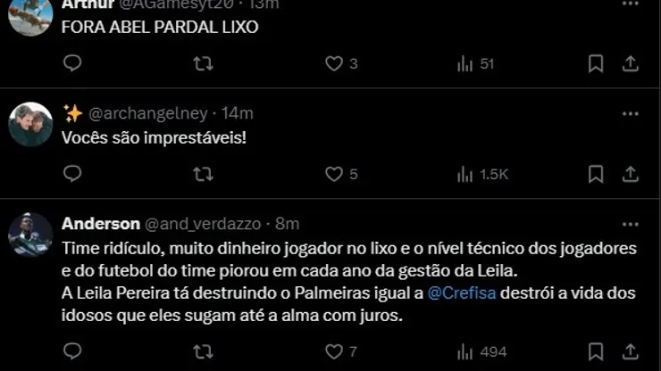 Os torcedores do Verdão estão extremamente insatisfeitos com o time até agora.