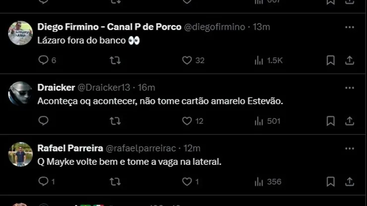 Tricolores leoninos reagindo a escalação na web.