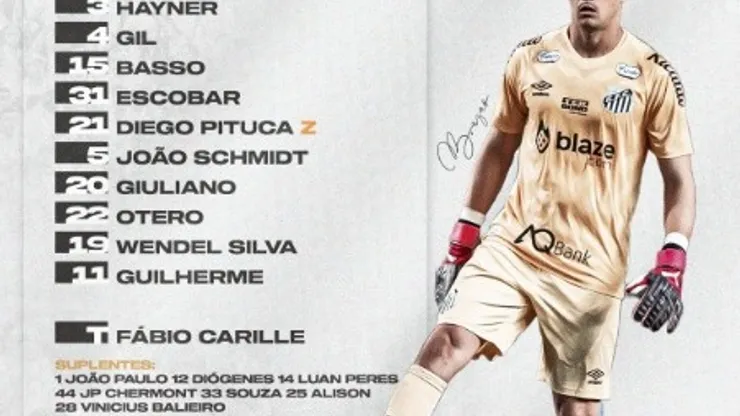 O Peixe vem a campo com Gabriel Brazão, Hayner, Gil, Basso, Escobar, Diego Pituca, João Schmidt, Giuliano, Otero, Wendel Silva e Guilherme, sob comando do técnico Fábio Carille.