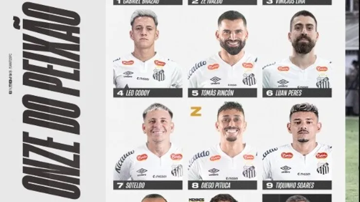 O Peixe vem a campo com Brazão, Zé Ivaldo, Vinícius Lira, Léo Godoy, Tomás Rincón, Luan Peres, Soteldo, Diego Pituca, Tiquinho Soares, Guilherme e Gabriel Bontempo, sob comando do treinador Pedro Caixinha.