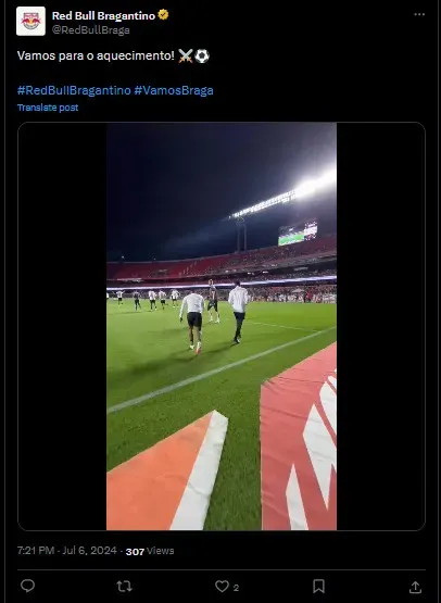 Nesse momento, as duas equipes já estão no gramado para a realização do aquecimento.