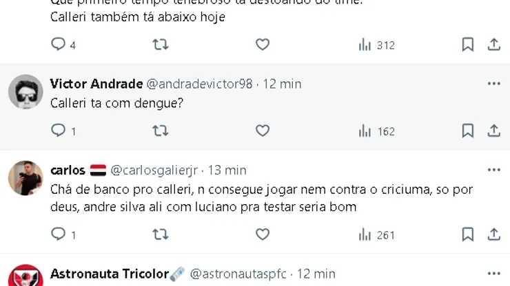 Mandante do duelo, o Tricolor tem 15 pontos somados e figura na 12ª colocação. O Criciúma, por sua vez, é o 13º colocado com 12 pontos, 12 a menos que o Flamengo.