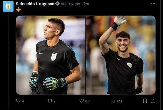 Rochet estava fora do gol uruguaio após ir para a área tentar finalizar no escanteio e a bola sobrou pra Sinisterra que chutou de lá de longe, mas a bola sai para a linha de fundo.