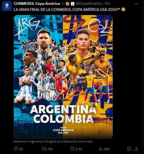 Argentina já está classificada para a final da Copa América. Foto: Reprodução X.