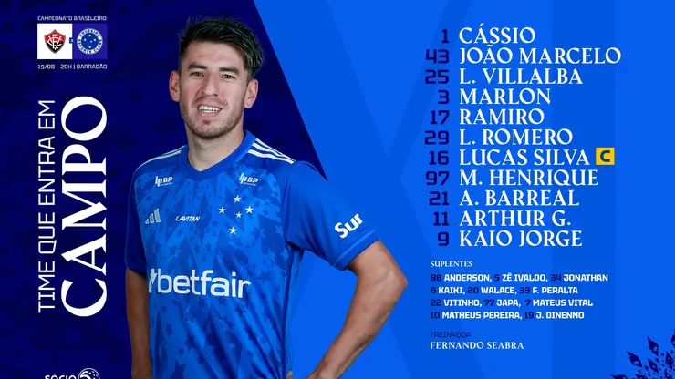 Os escolhidos de Fernando Seabra são: Cássio, João Marcelo, L. Villalba e Marlon; Ramiro, L.Romero, Lucas Silva (C), M. Henrique e A. Barreal; Arthur G. e Kaio Jorge.