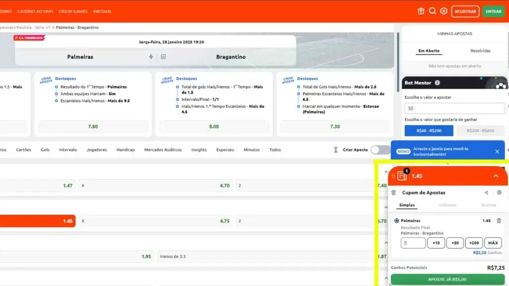Vale a pena conferir a lista de eventos e mercados disponíveis. Além de outros recursos oferecidos pela casa, como streaming ao vivo, cash out, e saque via PÌX.