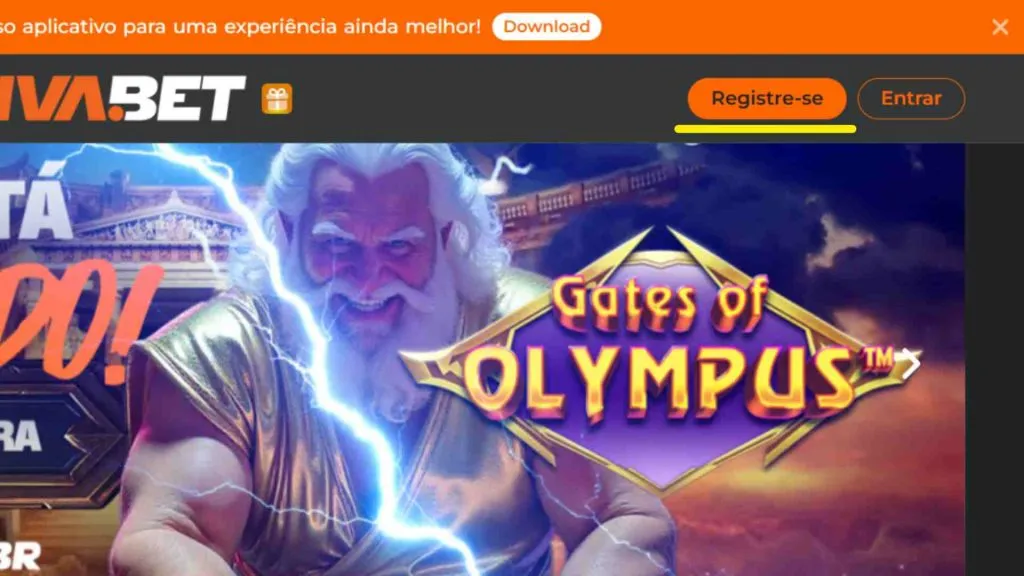 2 – Por lá, selecione o botão laranja Registre-se no canto superior direito;