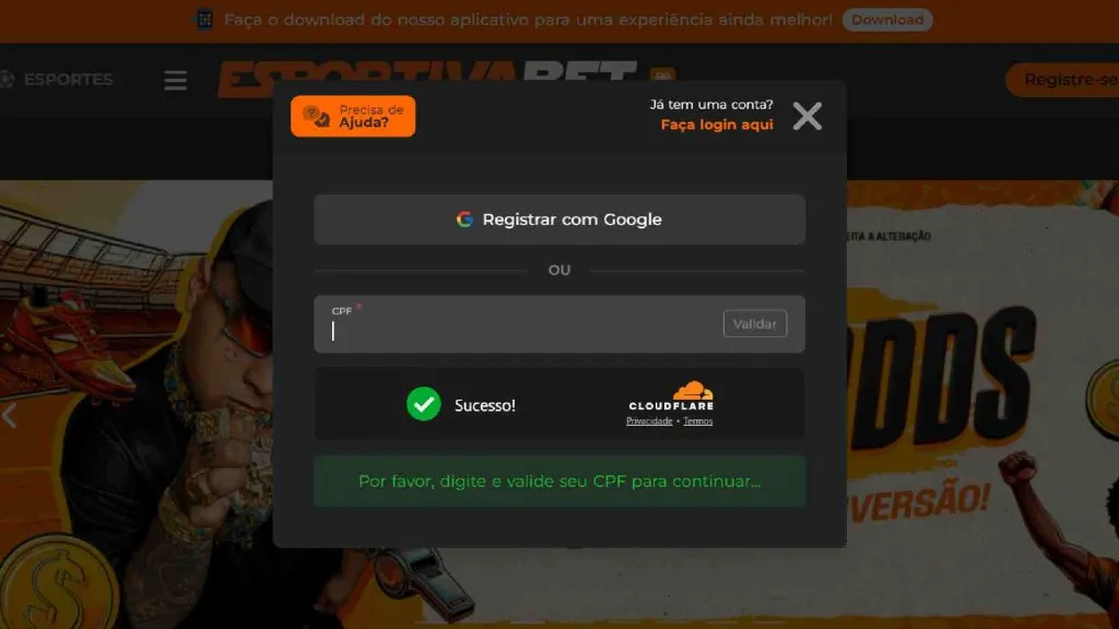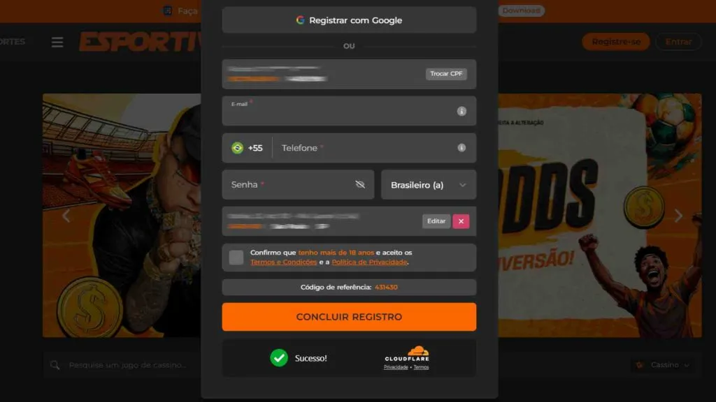 Pronto! Após seguir esses passos você terá terminado seu cadastro na Esportiva.bet.