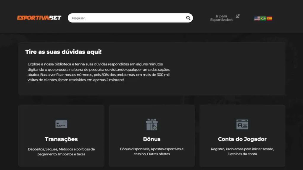 Em adição, a Esportiva Bet Brasil também têm uma central de ajuda com perguntas e respostas sobre transações, bônus, esportes, jogos e muito mais.