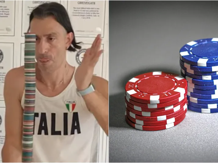 Italiano entra para o livro dos recordes ao empilhar fichas de poker